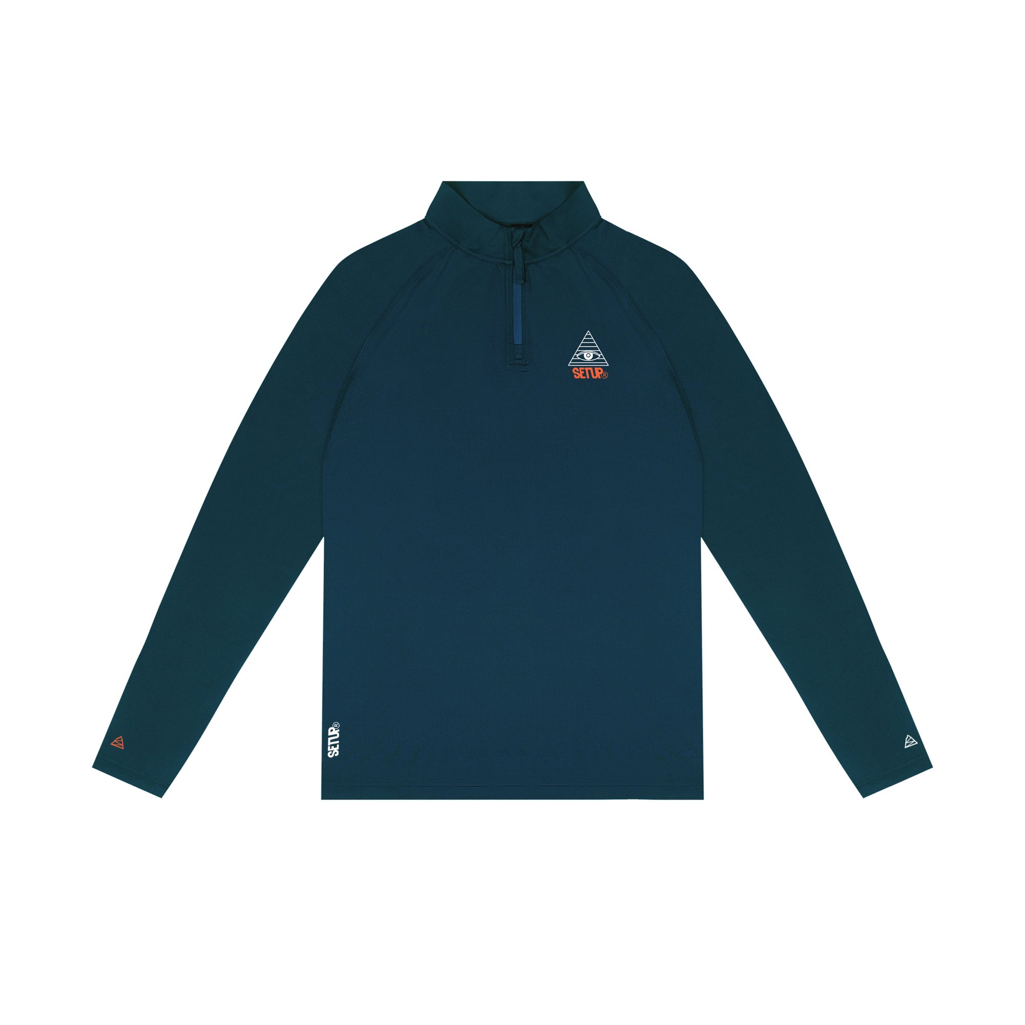 Offering all weather flexibility, the quarter zip top provides top breathability and wicking performance whist providing bulk free warmth.